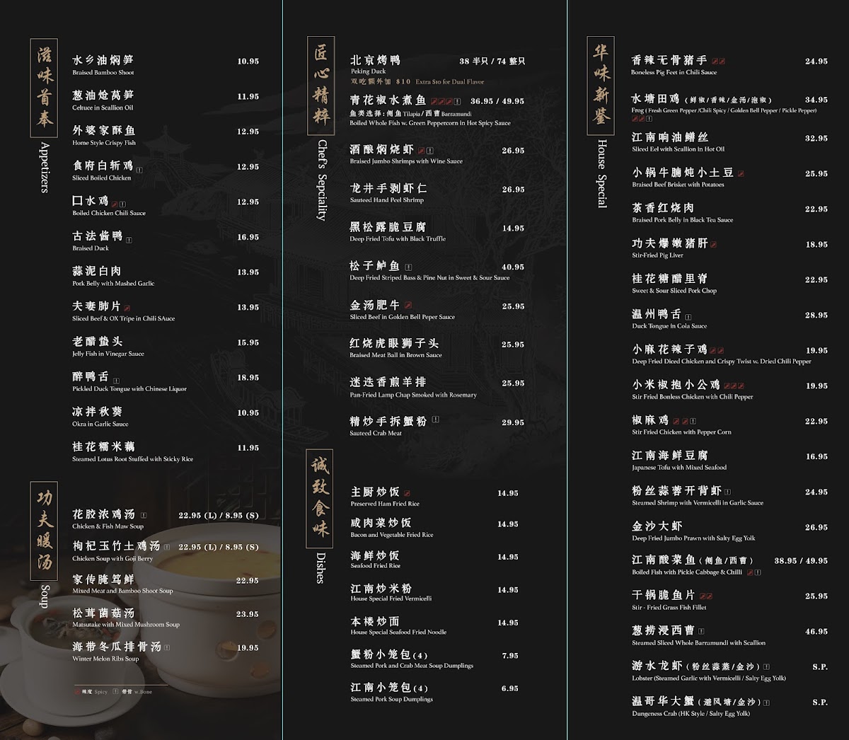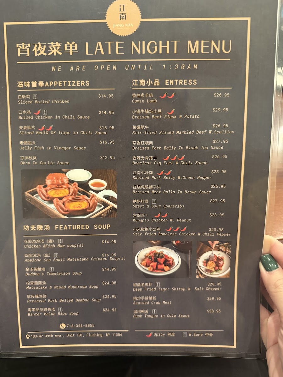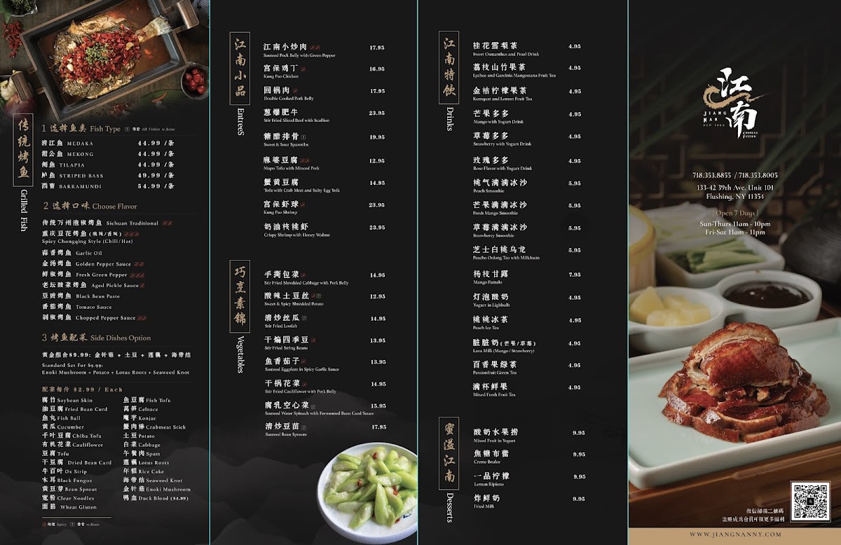 Jiang Nan Flushing offers a refined journey into authentic Chinese cuisine, rooted in the heart of Flushing, NY. Their menu showcases an artful blend of traditional flavors and bold creations, perfect for those seeking a genuine culinary experience. Start with delicate appetizers like Sliced Boiled Chicken or the uniquely textured Steamed Lotus Root Stuffed with Sticky Rice. The house specials stand out with dishes such as the Stir-Fried Grass Fish Fillet and the indulgent Deep Fried Shredded Eel with Dried Chili, reflecting the kitchen’s mastery of balancing heat and depth of flavor.